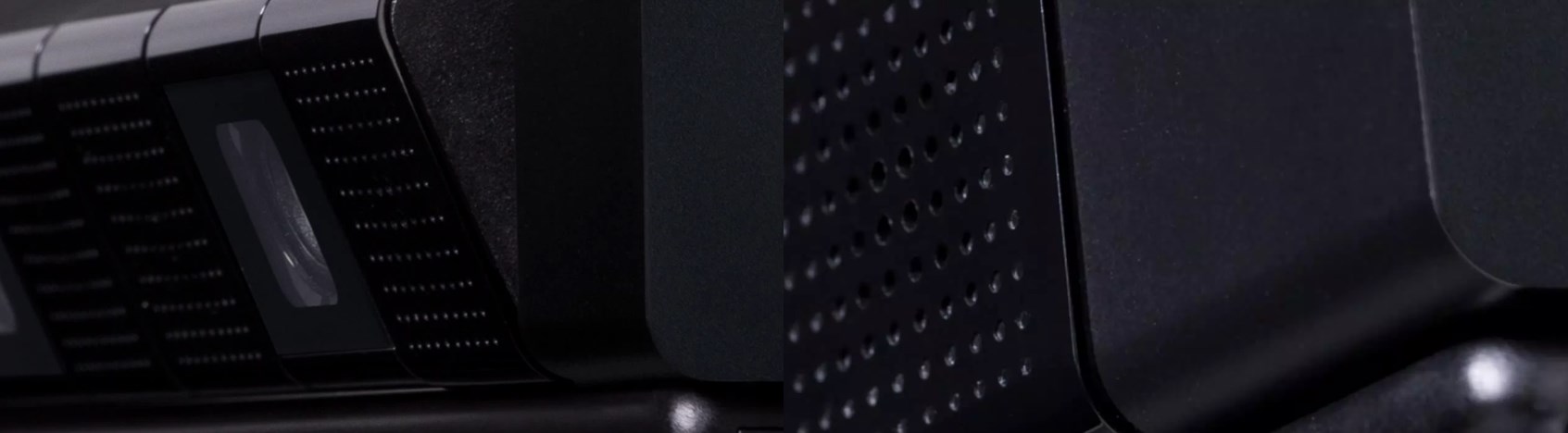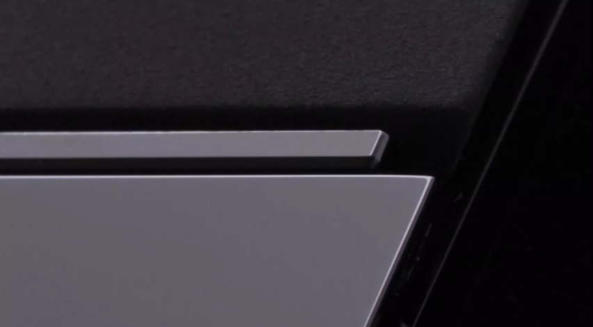 A la izquierda tenemos lo que parece ser la entrada de disco, con las luces de carga y lectura. Quizá el de abajo en lugar de ser una luz sea un botón, es difícil de saber. La imagen de la derecha me costó un poco al principio, ya que en el vídeo está mirando hacia abajo y no me cuadraba con la otra. Podemos suponer que el frontal de la consola es totalmente anguloso.