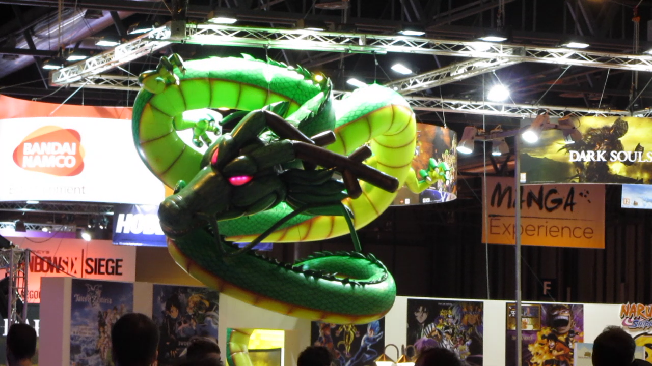 Por supuesto, Bandai Namco -que no Namco Bandai, cambiaron el orden del nombre- ha vuelto a montar un espectacular stand con distintos «simuladores» -no sé qué nombre usar- de MotoGP 15 o de F1 2015, además del Star Wars Arcade, un maquinón que me he quedado con ganas de probar pero del que todo el mundo salía encantado. También tenían un título muy esperado por los jugadores más perserverantes y/o masoquistas: Dark Souls 3. Y vigilando a todos los que se acercaban a los dominios de Namco se encontraba un enorme Dragón Shenron, cuyos ojos se iluminaban dominando el pabellón.