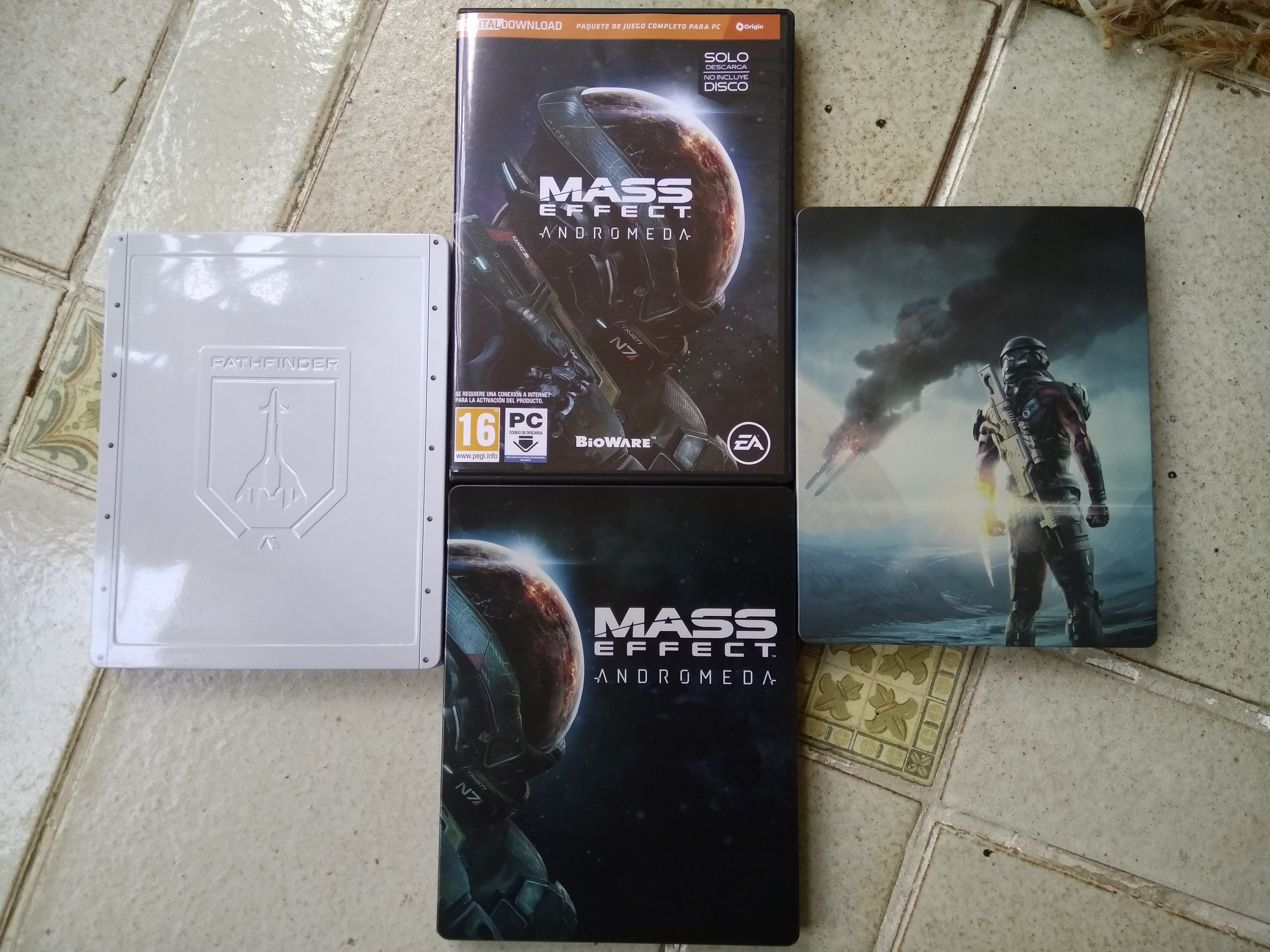 Luego hay otro tema, que se extiende al resto de plataformas: el regalo de las cajas metálicas (steelbook). A mí me encanta tenerlas, algunas son muy simples, pero otras son verdaderamente bonitas y están muy trabajadas -con relieves o efectos en la superficie-, pero con cada lanzamiento termino encontrándome con dos cajas para un mismo juego. Estoy segura de que a mucha gente no le supone ningún conflicto, pues tirarán la de plástico y se quedarán con la de metal, pero yo me siento incapaz -gracias «diógenes coleccionista»-. Las distribuidoras no tiene mucho que hacer, porque quizá sería cargarse de más trabajo: ofrecer un número limitado de cajas metálicas exclusivas de la reserva PERO que estas ya incluyan el juego. Esto, para mí, sería lo ideal, porque me ahorraría quebraderos de cabeza. No obstante, no creo que resulte beneficioso a las compañías. Para que os hagáis una idea de mi situación, ahora mismo me encuentro con dos juegos en físico de Mass Effect Andromeda, tres cajas de plástico y cuatro metálicas.