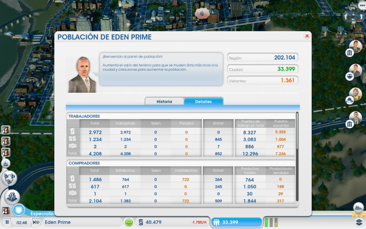 SimCity es un juego divertido, especialmente cuando aprendes cómo gestionar los recursos y a equilibrar las inversiones para mantener tus resultados con beneficios positivos. Pero todas las incoherencias que surgen cuanto tu ciudad ha crecido lo suficiente son desesperantes hasta decir basta. Es posible que se requiera un nivel de control del juego más elevado del que ya tengo, pero la superficie disponible de cada mapa se queda rápidamente pequeña para poder atender a las demandas. Bienvenidos a la ciudad que enloquece.