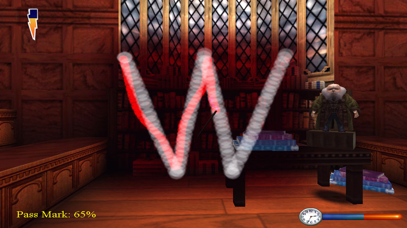 Aunque mi imaginación infantil esperaba otra cosa, no teníamos casi libertad para movernos por el castillo, exceptuando algunos pasillos y una pequeña zona del exterior que conectaba con los jardines de casa de Hagrid, Herbología y el campo de Quidditch. La propia historia, generalmente acompañados de Ron, nos llevaba de una zona a otra. Las clases se basaban, primero, en el aprendizaje de un hechizo, a través de la reproducción de su icono utilizando el ratón -que era bastante complicado por cierto- y, después, recorriendo una mazmorra llena de desafíos.