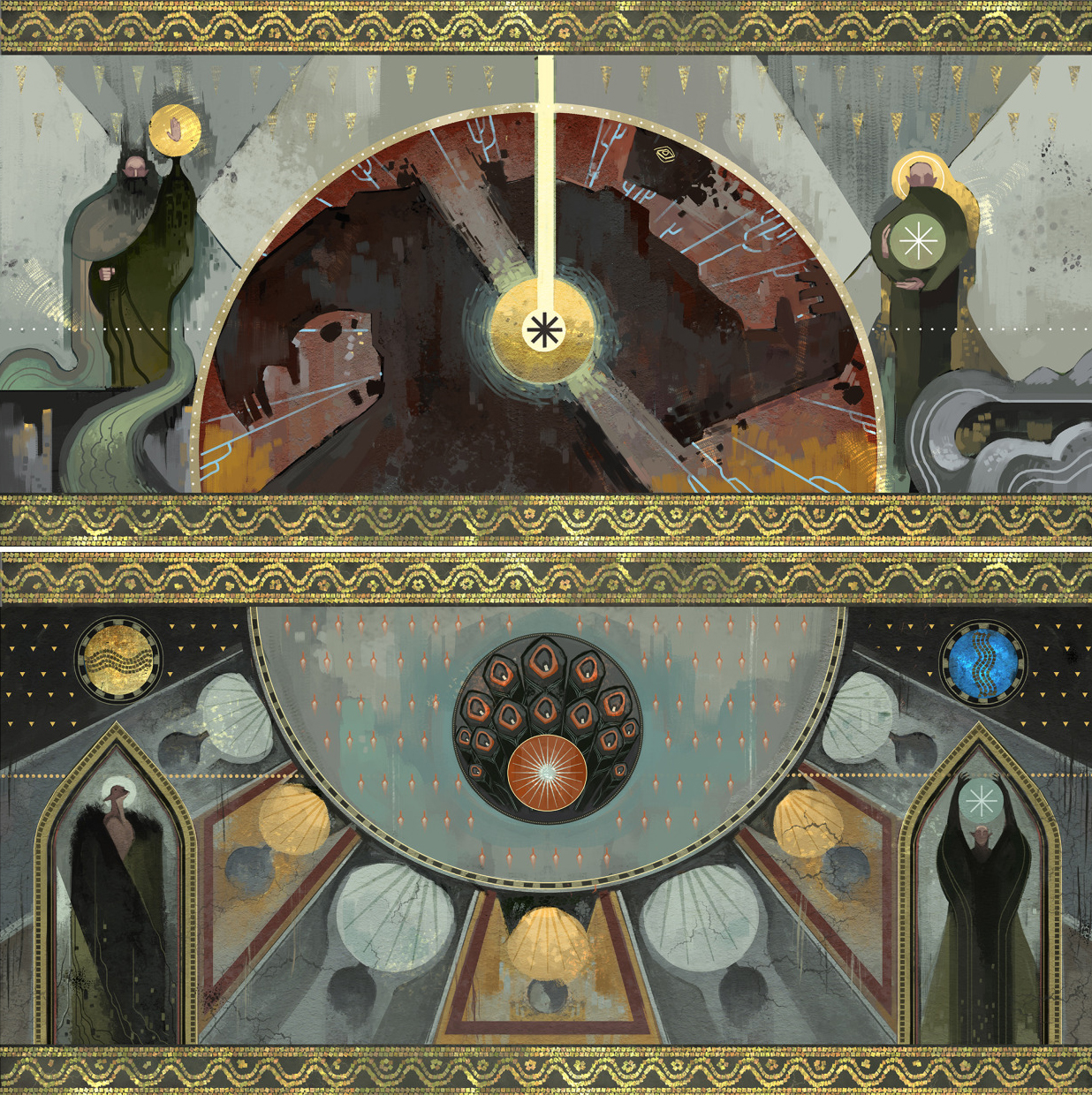 En un segundo repaso quiero resaltar algo sobre la simbología de los semicírculos: el número de ellos es 7, exactamente el mismo que el de los evanuris que hay atrapados por el Velo. Solo dos aparecen iluminados, como operativos. ¿Podría representar, entonces, a Solas destruyendo los sellos que los guardan? ¿Pueden ser los foci la clave del encierro, igual que el orbe de la destrucción fue la fuente de energía que permitió a Fen’Harel crear el Velo en primer lugar? Curioso nombre, por cierto, el de su foci: ¿destrucción del mundo de los elfos y premonitorio por la destrucción del Velo?
