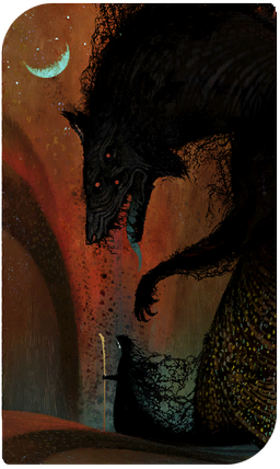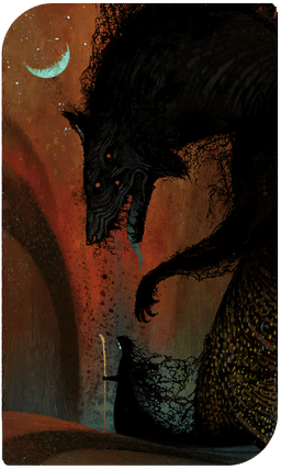 La carta del tarot final de Solas, si no se ha tenido un romance con él, es la que veis sobre estas líneas. Y es lo que me hace pensar en la perversión del personaje. Como podéis observar, el lobo terrible, reconocible por sus tres ojos, tiene un aspecto aterrador y va absorbiendo poco a poco la esencia de Solas. Es decir, el individuo que nosotros conocimos en Inquisition, aun con lo repelente que podía resultar a veces (aunque para mí, personalmente, tiene una forma de ser que me maravilla) va desapareciendo poco a poco para convertirse en aquel que, eones antes de la edad del Dragon, era conocido como Fen’Harel. Trespasser deja ver parte de esta transformación, al presentarnos a un Solas más regio, con mucho más poder y con la gran determinación de devolver a los elfos el mundo que perdieron. Fen’Harel es un liberador, pero también la condena del mundo. Alguien capaz de hacer cualquier cosa para conseguir sus objetivos. Si comparáis la representación del lobo terrible en la carta del tarot con la de la imagen del teaser podéis ver que la transformación parece completa, al no haber zarcillos que escapan de su figura ni la presencia de Solas como origen. Ahí ya nos encontramos ante el dios del engaño y la rebelión en todo su esplendor.