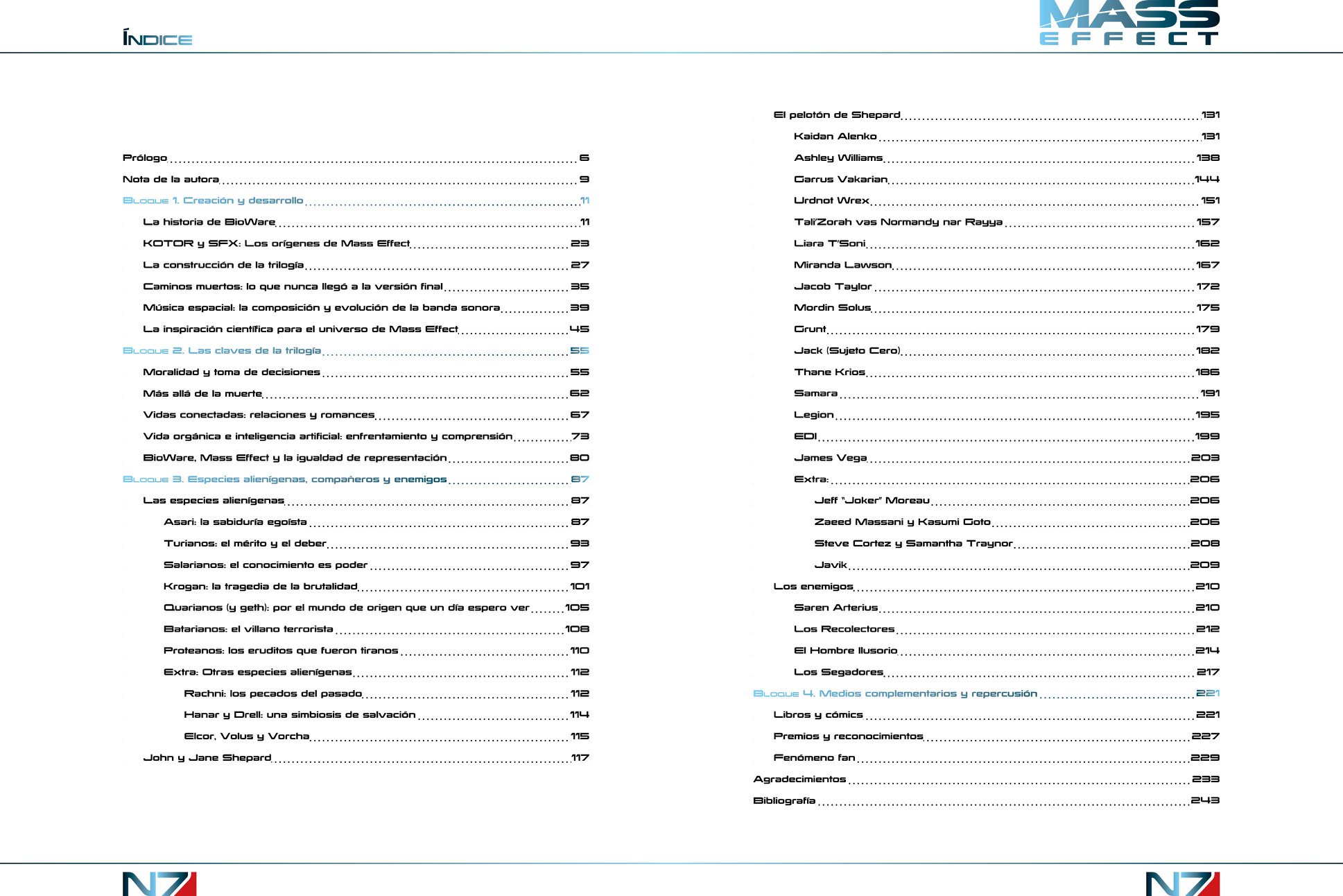 Mientras todo esto sucedía, nos poníamos ya en 2017 y yo seguía con el runrun de escribir un libro al que ya casi no dedicaba tiempo. Se estaba convirtiendo en ese sueño que nunca cumpliría. Mi pareja, Carlos, y mi amigo Marcos me insistían en que me lanzara a la piscina y lo escribiera, aunque no tuviera editorial. ¡Ya habría tiempo de llegar a un acuerdo! Diversas personas, conocidas y no conocidas, me decían de vez en cuando que con lo mucho que sabía de Mass Effect tenía que escribir un libro. Que era la persona indicada. Y esto me animaba mucho y me hacía feliz, pero no terminaba de prender la chispa que necesitaba. Hasta que un día entre cervezas, Marcos me dijo que si quería me ponía en contacto con la editorial Dolmen. Y como tampoco es cuestión de cerrarse puertas porque sí, le pedí que por favor lo hiciera. En menos de una semana tenía la confirmación de que estaban interesados y ya sólo tenía que escribirles ofreciéndoles el proyecto. Y lo hice, les envié mi propuesta, con un índice actualizado (que sería el definitivo y que podéis ver en la imagen) y una muestra de lo que había escrito. Tanto a él, como a Darío (que se convertiría en mi editor) y otros miembros de Dolmen les gustó. Estábamos en diciembre de 2017 y el año se iba a cerrar de manera maravillosa.
