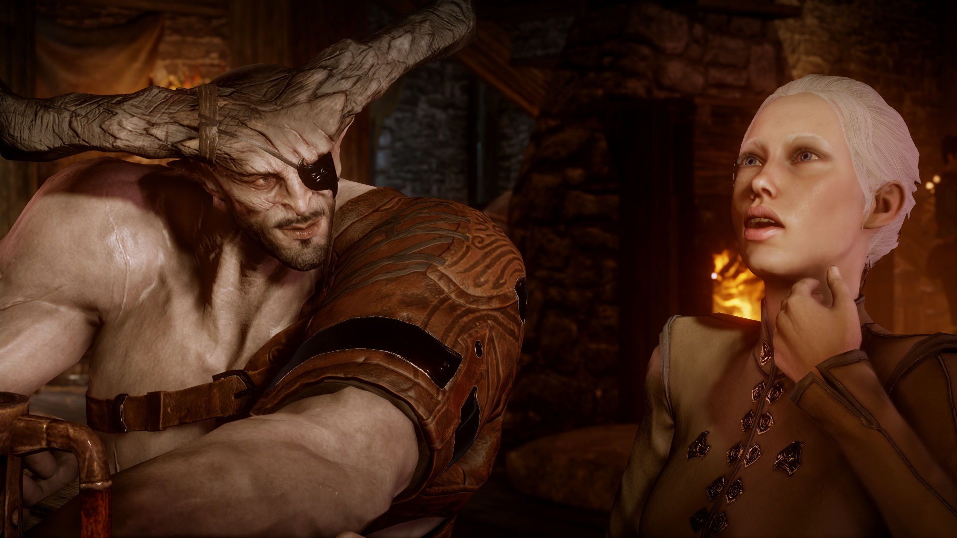 Por otro lado, tenemos las palabras de Corypheus y Kieran (si tiene el alma del antiguo dios en él) que refuerzan la idea de que los qunari fueron creados por una mano mortal, resultado de un experimento en algún momento de la historia. Kieran, en función de lo que elija el jugador, tiene estas dos líneas: «I notice your blood, it doesn’t belong to your people» y «I just feel bad about what happen to your people«. Corypheus, por su parte, le espeta al inquisidor estas palabras en la batalla final: «What do they call you, a qunari? Your blood is engorged with decay. Your race is not a race, it is a mistake!». La manera en que Corypheus se refiere a cualquier inquisidor indica que sus insultos o revelaciones las hace debido a su experiencia y no a un conocimiento profundo o espiritual como es el caso de Kieran. Esto podría indicar que los qunari fueron creados por los magos de Tevinter en algún momento de la era antigua, cuando el Imperio se extendía por Thedas hasta ocupar Ferelden y sus magos se dedicaban a forzar los límites de la magia. Así, se explicaría lo de «tu raza no es una raza, es un error», un experimento que salió ¿mal?