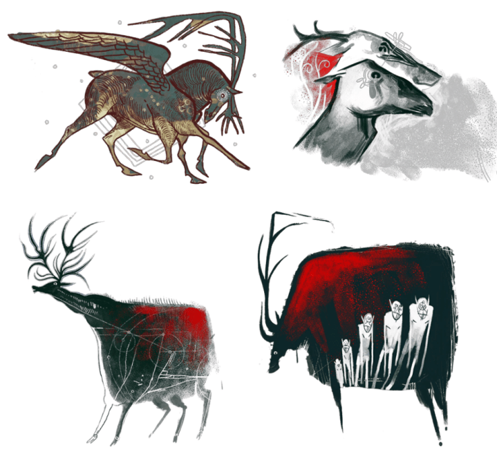 […] Each time she  entered the Void, Andruil suffered longer and longer periods of madness after returning. Andruil put on an armor made of the Void and all forgot her true face. She made weapons of darkness and plague ate her lands. She howled things meant to be forgotten and the other gods became fearful Andruil hunt them in turn[…]