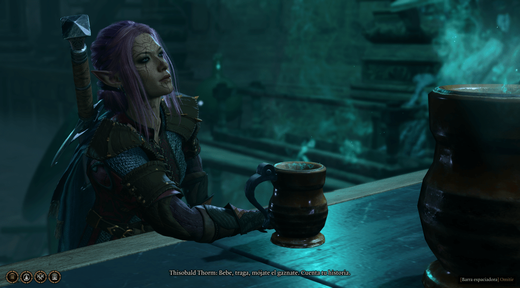 Ya que hablamos de la experiencia de juego y los menús, mientras jugaba los primeros compases de su historia había algo en él que me hacía pensar poderosamente en Dragon Age Origins. Yo nunca he jugado a los anteriores Baldur’s Gate. Como os he contado en alguna ocasión, en mi casa entraron muy pocos videojuegos a lo largo de los años, así que hay mucha experiencias que me he perdido. Por eso a la hora de jugar a esta tercera entrega, mi cabeza rescataba automáticamente la experiencia más cercana que ha tenido: Dragon Age. Y ciertamente es innegable lo que se ha dicho de él siempre, que es el sucesor espiritual de Baldur’s Gate. Los menús de personaje, las conversaciones, las penalizaciones… todo ello me recordaba a aquel juego de BioWare y creo que en cierta manera me ayudó a navegar un poco mejor por las primeras horas de la historia de mi elfa. Si alguien hiciera un remake de Dragon Age Origins respetando su sistema de juego, me imagino perfectamente a Larian llevándolo a cabo con maestría.