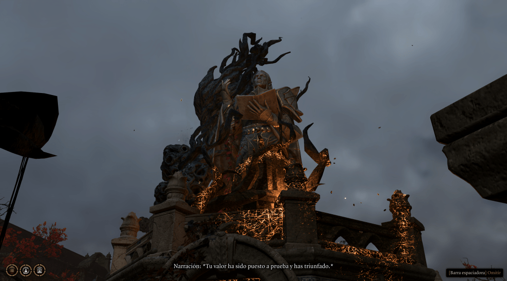 Más allá de eso, que no me quiero desviar del tema, Baldur’s Gate 3 me parece que es un juego tan brillante como tramposo. Está plagado de situaciones sorprendentes, inesperadas, divertidas, estresantes… Cualquier cosa puede derivar de una pifia y la magia de no saber, nunca, si la decisión que estás tomando es la «correcta» es lo que le da gran valor. Por que en un juego de rol no debería haber una decisión «correcta», deberíamos movernos siempre en esa escala de grises en la que nuestras elecciones conforman nuestra historia, dentro de lo posible en un videojuego, por supuesto. Y su guion está a la altura de las circunstancias, al menos en los dos primeros y extensos actos. En el tercero… bueno, es cuando llegan las trampas.