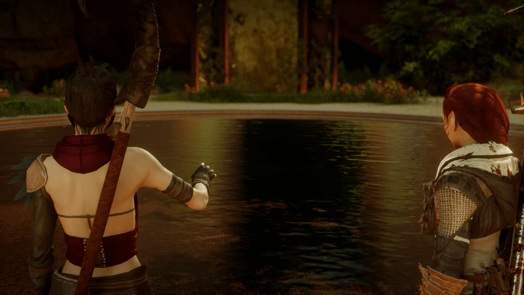 Es una decisión complicada incluso desde el desconocimiento, porque Morrigan parece demasiado ansiosa por beber ella y tú, como jugador e Inquisidor, realmente no sabes de sus intenciones. Por otro lado, está la opción de que sea el jugador quien tome posesión de los conocimientos del pozo, a pesar de las advertencias de Abelas, Cole, Solas, Sera… Y muy pronto se demuestra el peligro de unirse a las voces del pozo: Solas exclama con gran ira (para ser un personaje que, en general, mantiene bastante la compostura) que te has puesto al servicio de un antiguo dios élfico, «eres una criatura de Mythal, hagas lo que hagas ahora, lo sepas o no, será para ella». Cuando por fin nos encontramos ante Flemeth, poseedora del alma de esta evanuri, es capaz de controlar a aquel que haya bebido del pozo.